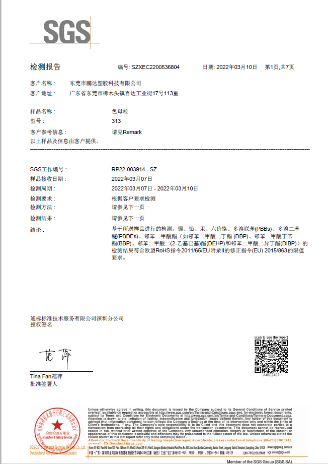 和鵬達塑膠科技有限公司合作很長一段時間了,他們的產品質量好,服務到位,且原材料都通過SGS測試符合歐盟REACH,PaHS、ROHS及無鹵指令,備有美國FDA級食品接觸規格物料,和他們合作完全沒有后顧之憂!