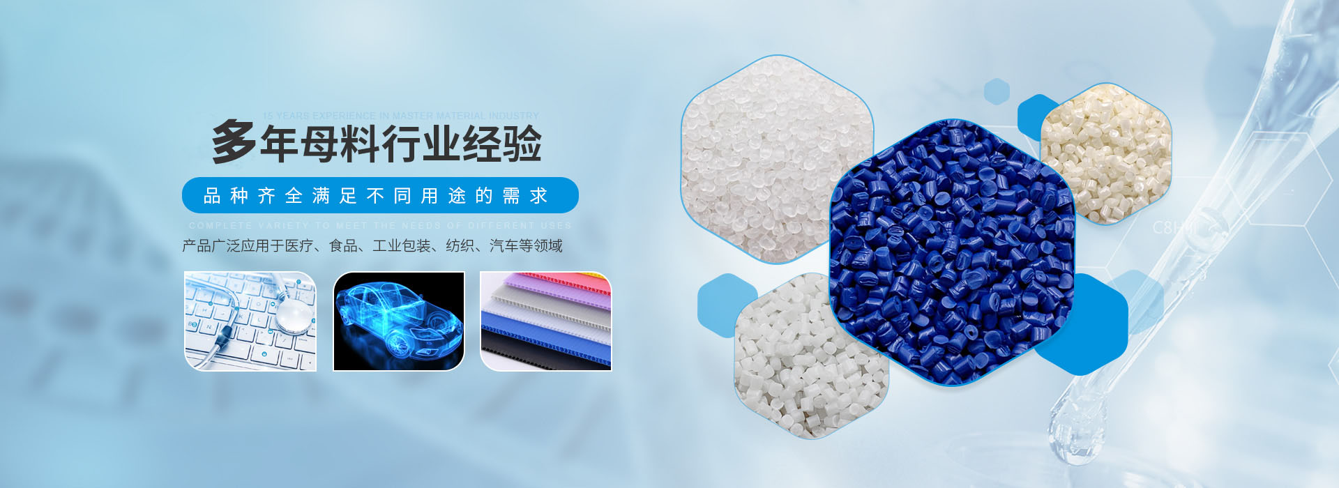 秉承開拓創新的經營宗旨,研發技術人員具有從事高分子塑膠行業十多年以上的實踐工作經驗,可根據客戶需求,訂做各種塑膠載體色母粒可適用于注塑、吹膜、片材、管材、吹塑、流延、纖維、拉絲、板材、無紡布、擠出鉀出等各種成型工藝要求,可訂做阻燃V0,抗靜電,激光鐳雕,光擴散···